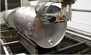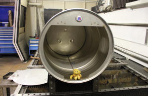 Hergestellt aus einem gebrauchten und gereinigten Chromstahlfass. Mit Laser bearbeitet und von