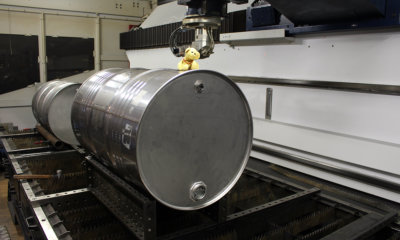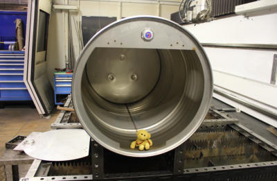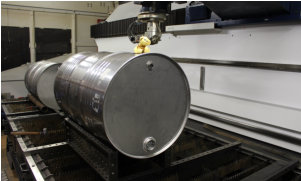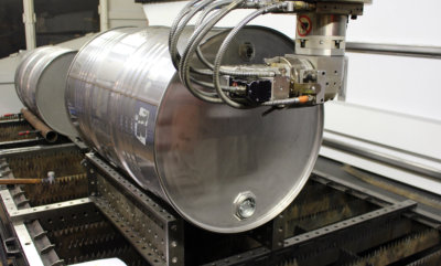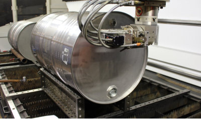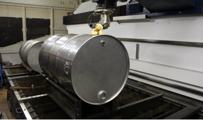 Prätzision schneidet der Laser das Fass.